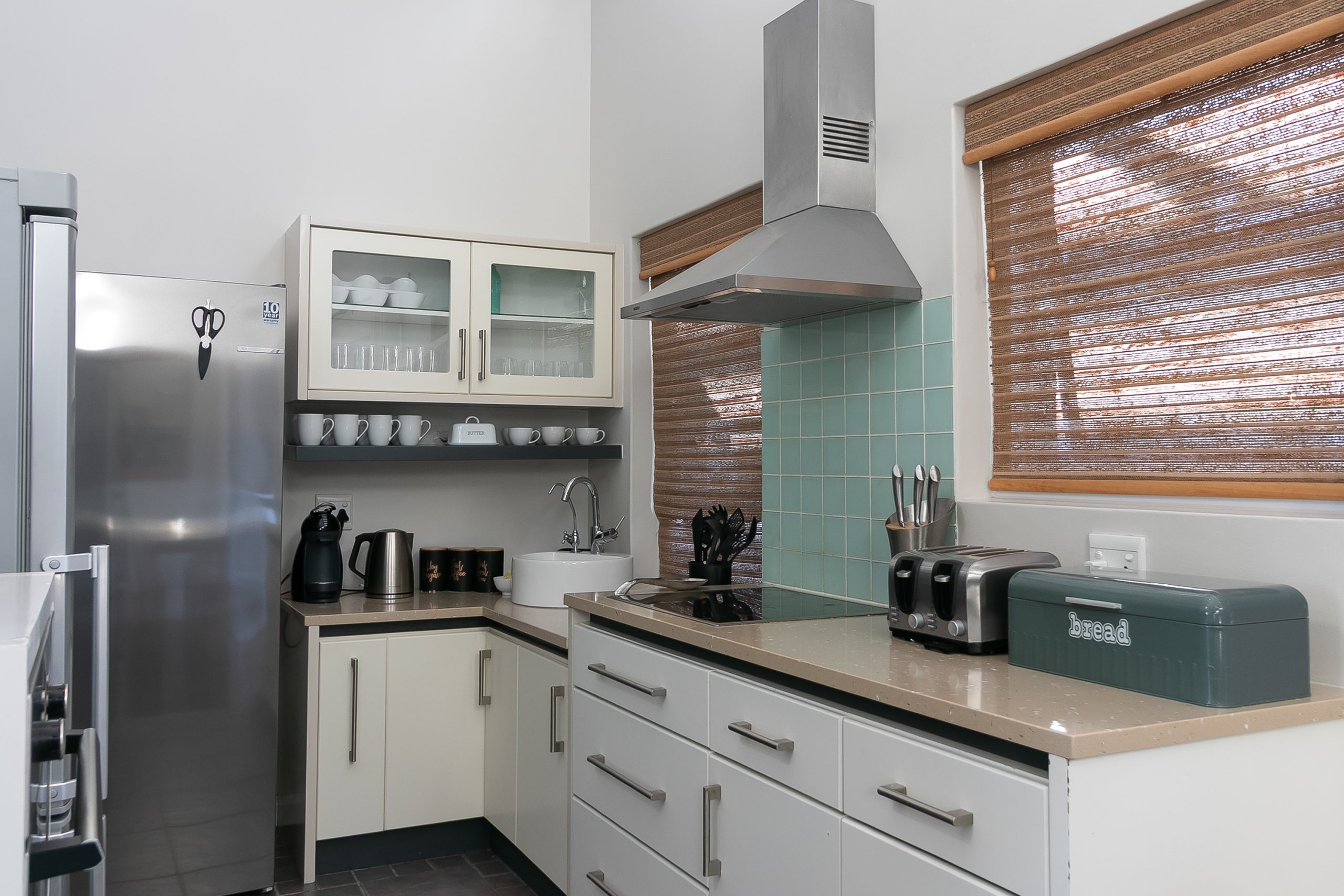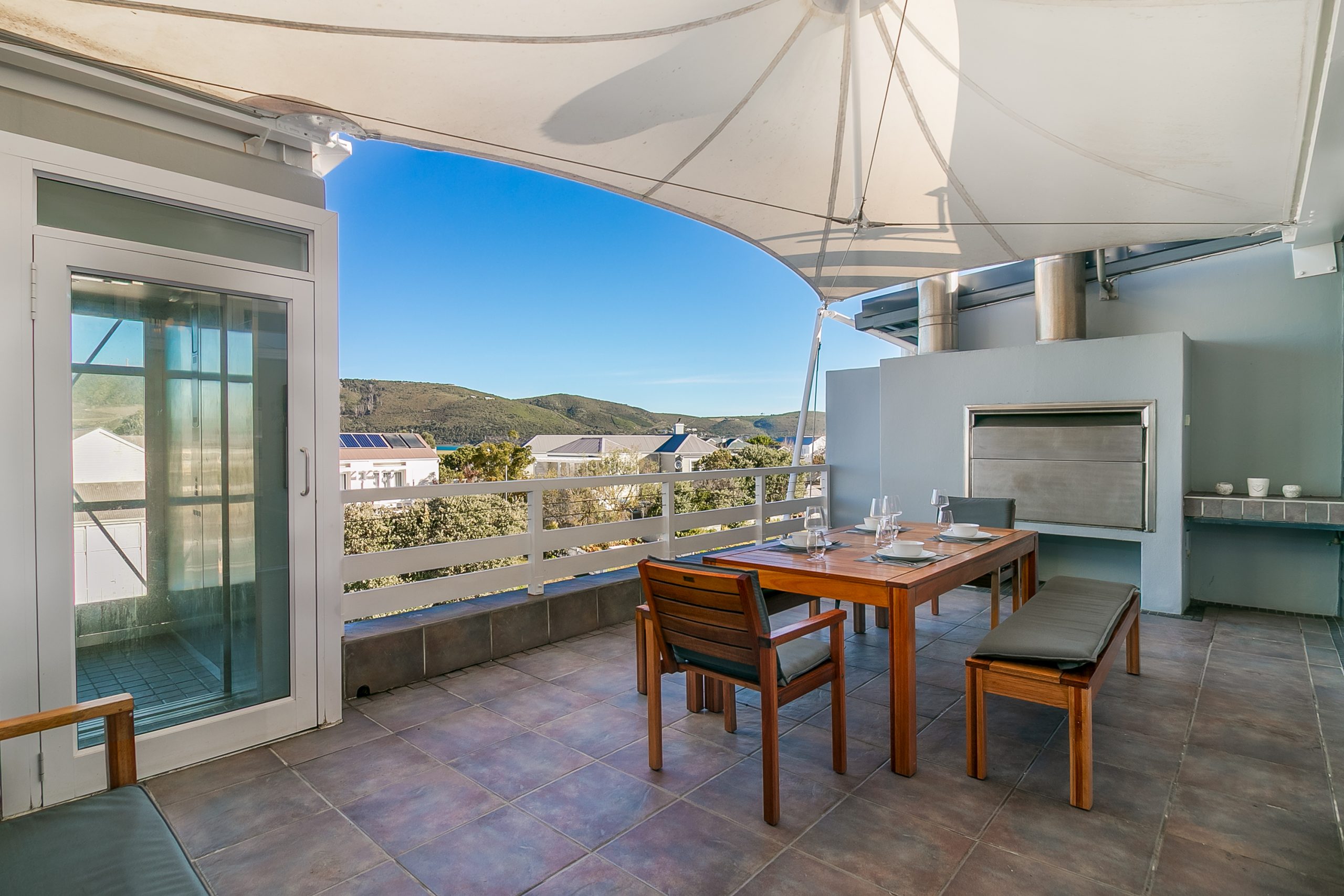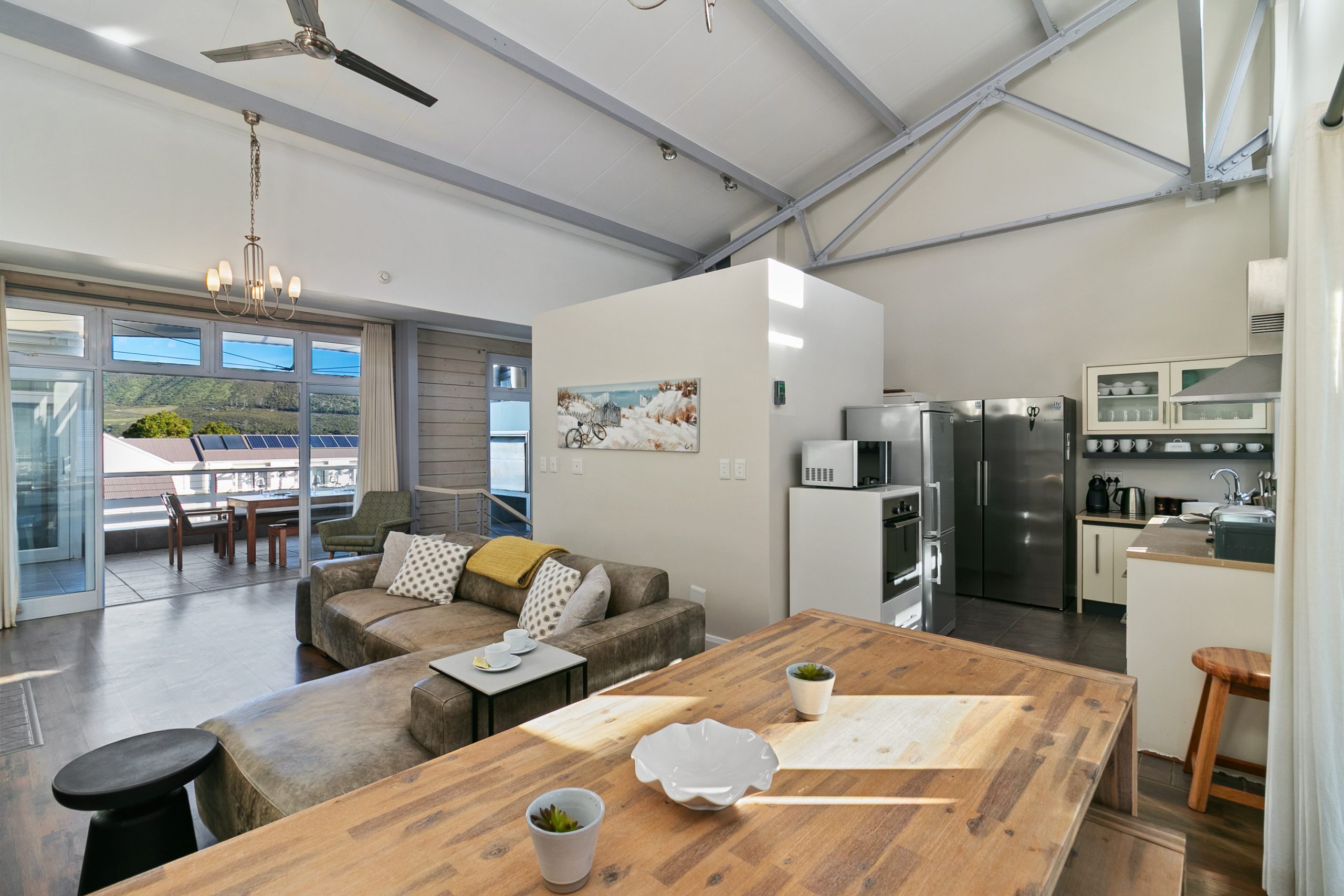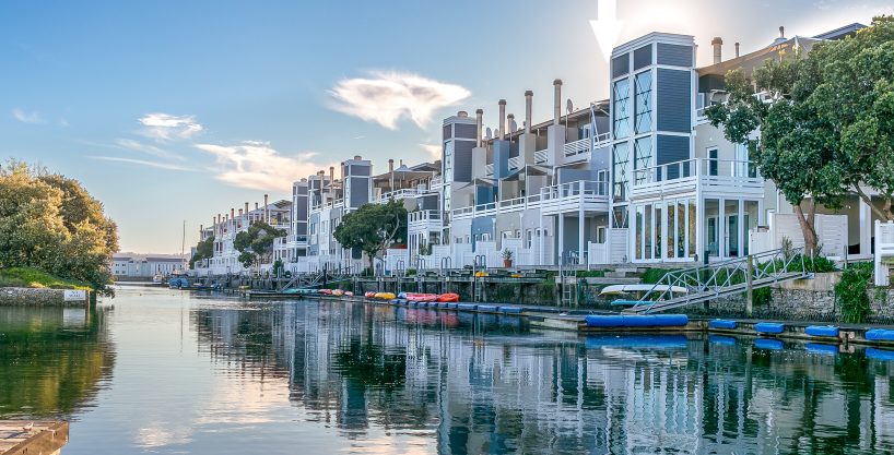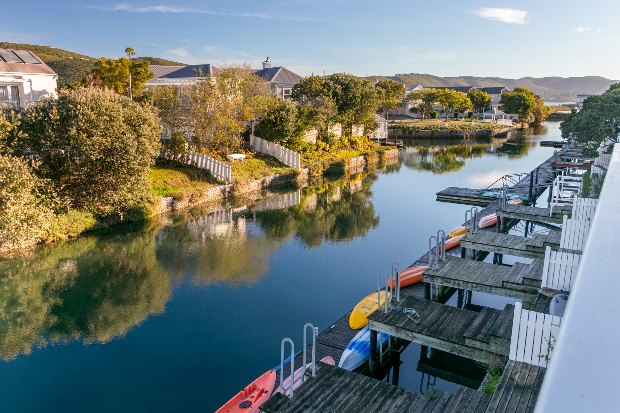 Designed to impress, the top floor boasts a light and airy open-plan living area with double-volume ceilings and windows that flood the space with natural light. A modern combustion fireplace adds warmth and charm, while stacking doors open on both sides to a covered verandah and a generous entertainment balcony—complete with another built-in stainless steel braai and panoramic views of the canals. The kitchen, thoughtfully tucked to the side, includes a private scullery and benefits from the natural light pouring through the high-level windows.