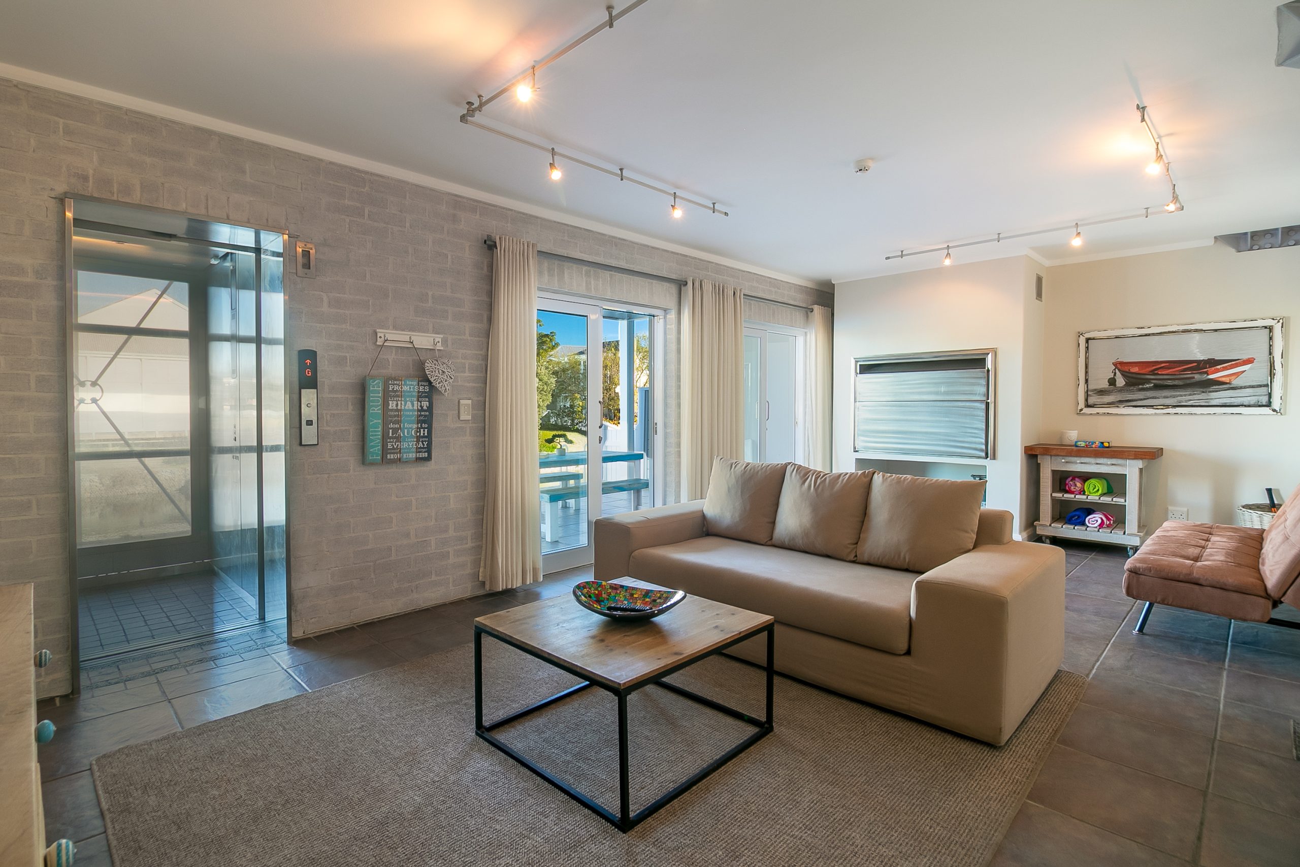 Step into a spacious TV/playroom that flows effortlessly out onto an entertainer’s deck overlooking the canal. Here, you’ll find a built-in stainless steel braai, perfect for weekend gatherings, and direct access to the water via your private jetty. A guest bathroom and a convenient elevator complete this level.