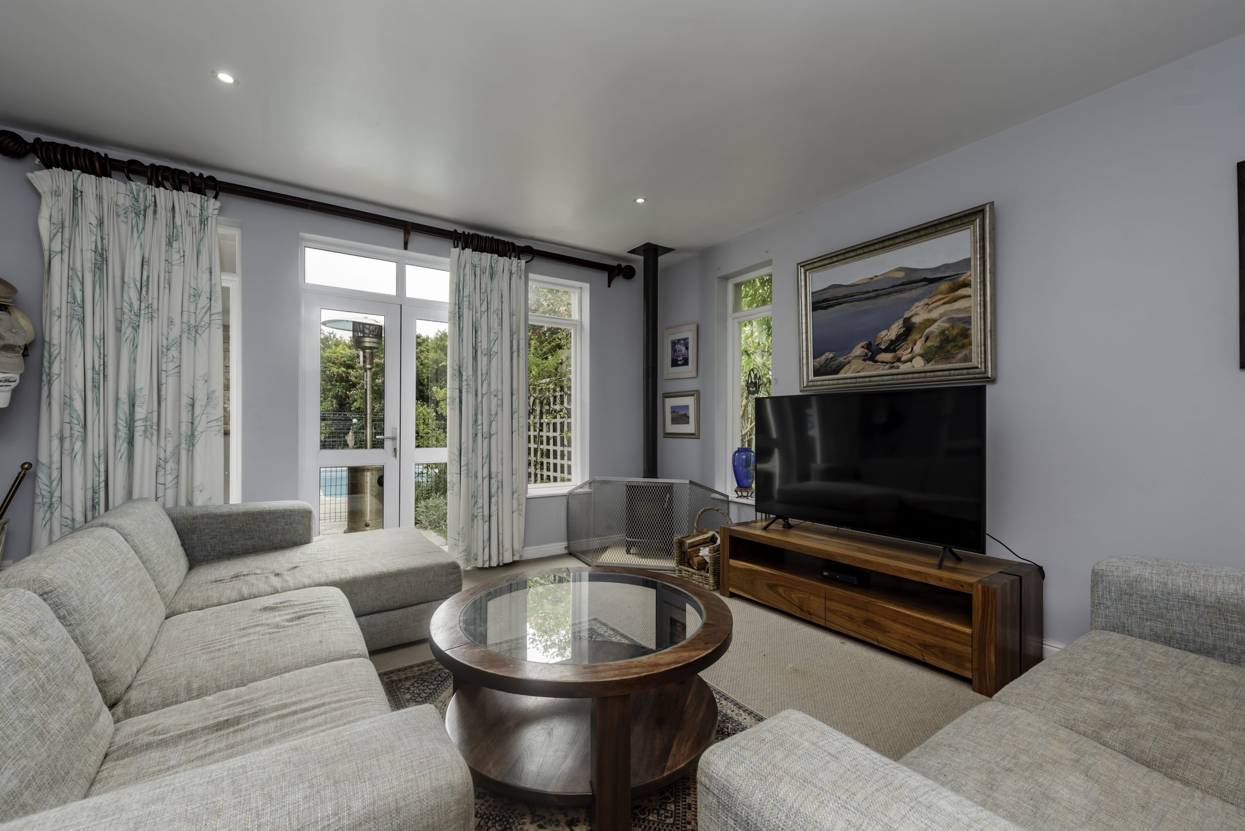 Designed for relaxed living and entertaining, the open-plan kitchen, dining, and lounge areas flow effortlessly, extending into a sunny breakfast room and a cosy TV lounge with a wood-burning fireplace. A guest suite and stylish guest bathroom complete the lower level.