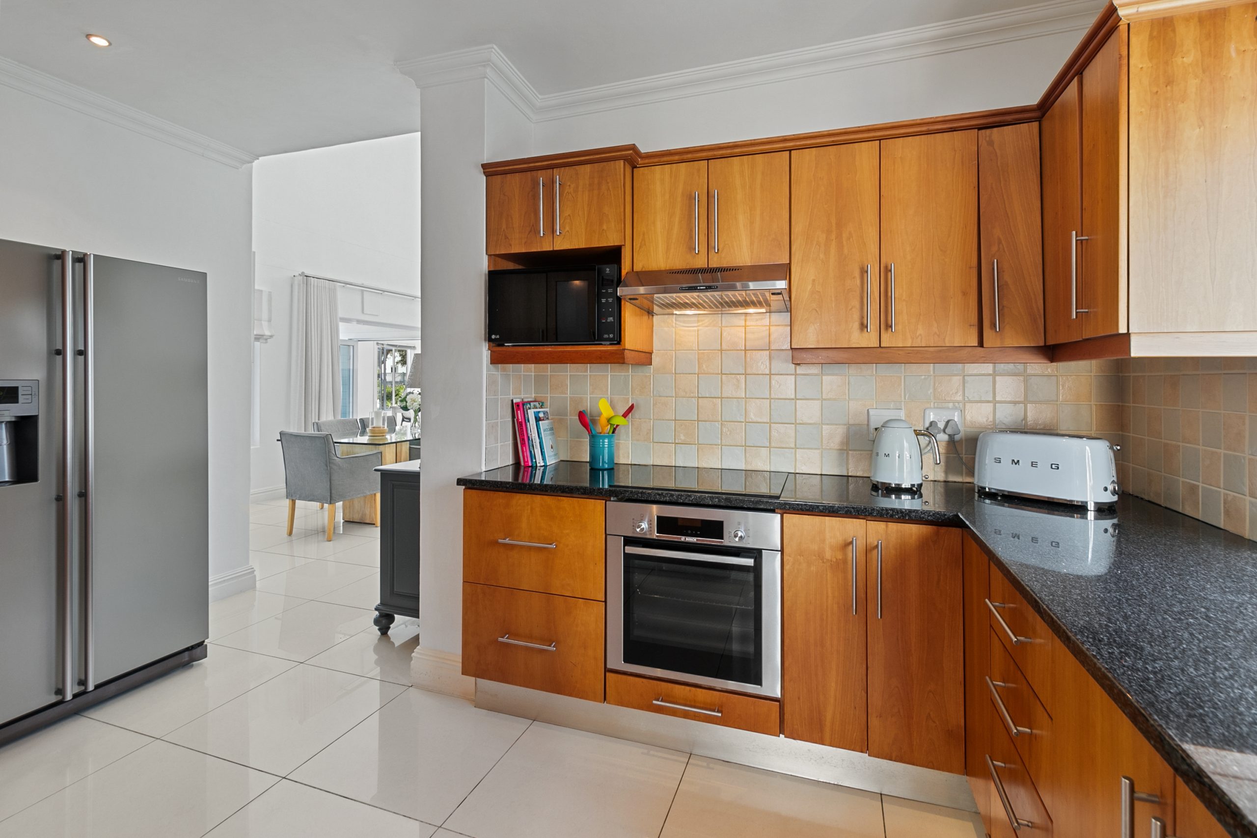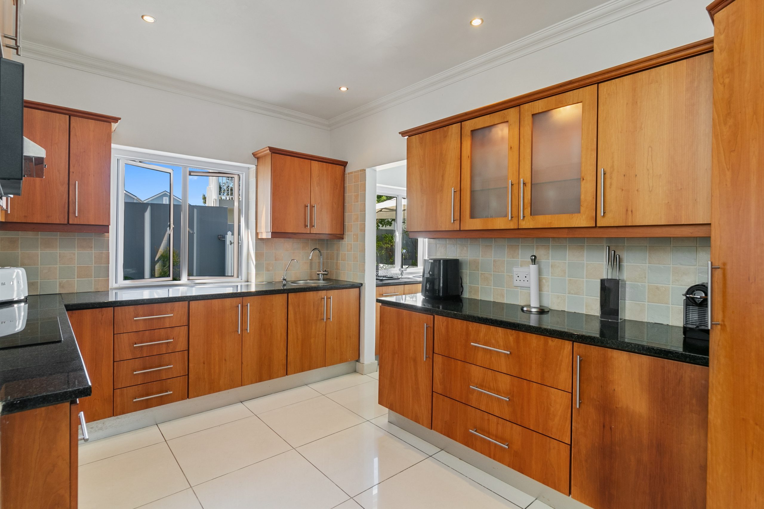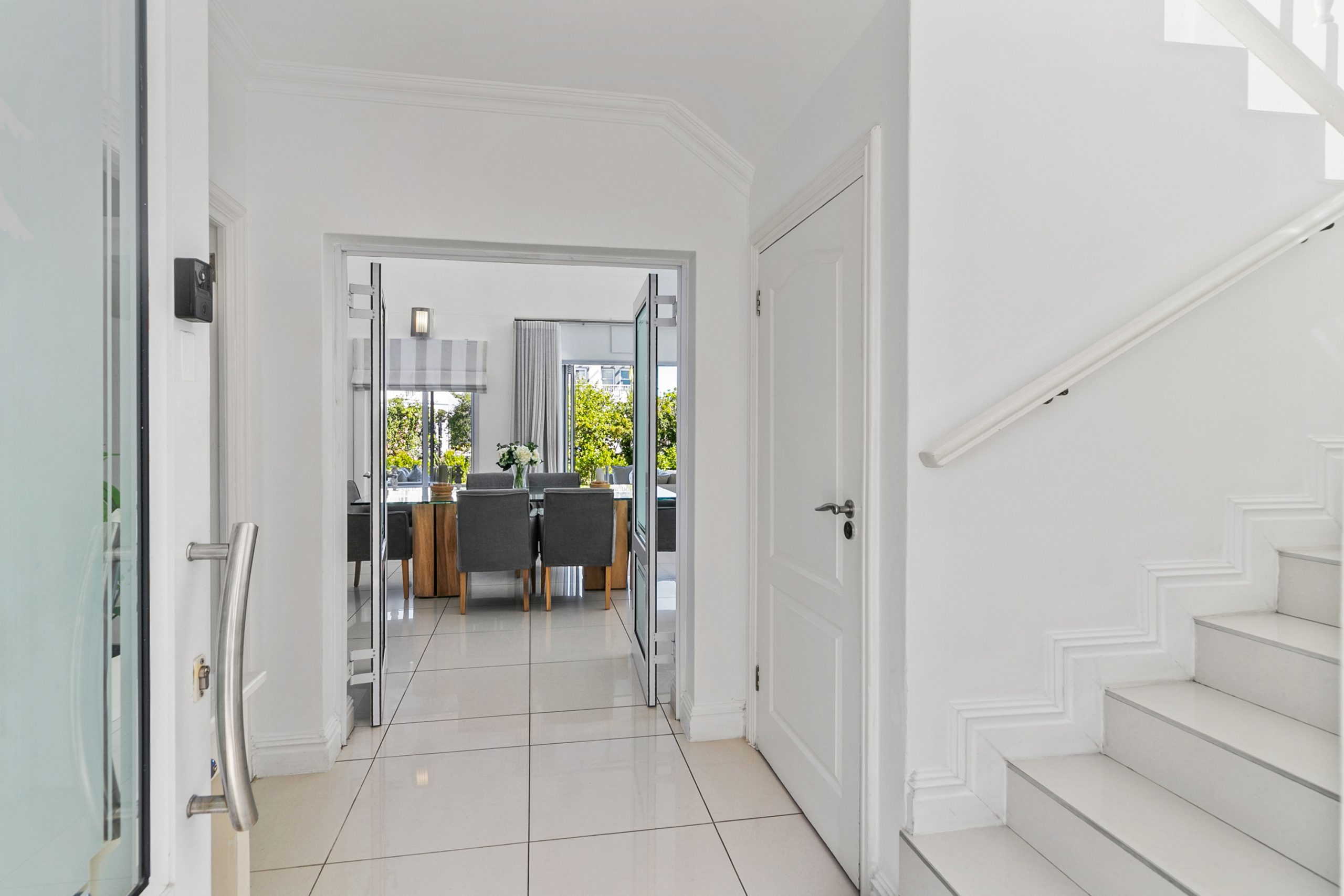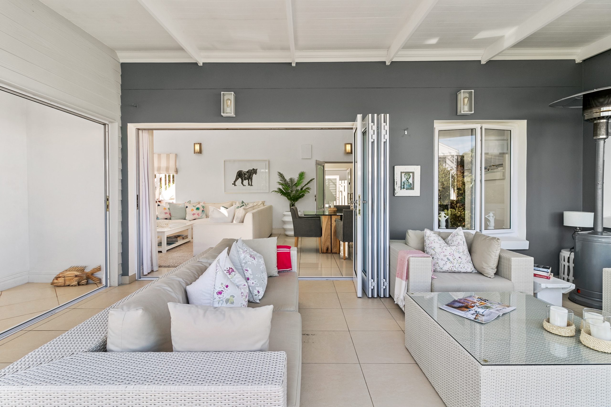 Stacking doors from the living areas open seamlessly onto an expansive outdoor patio with a built-in braai, flowing down to the jetty and gazebo— the perfect setting for waterside relaxation. At the back, a sunny courtyard with a private, heated pool enhances the home’s appeal. An additional small en-suite bedroom at the rear provides versatile accommodation options.